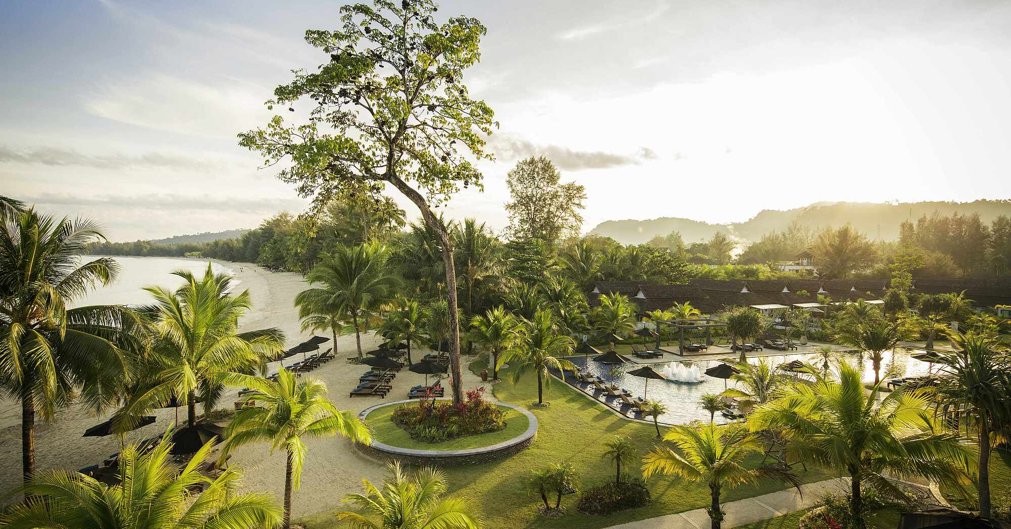 푸켓 국제공항에서 약 90분 거리에 있으며, 열대 정글과 안다만 해의 맑은 바다를 배경으로 한 조용하고 평화로운 환경을 제공합니다.
